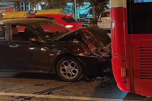 Na fotografiji koja je objavljena na Instagram stranici 192_rs, vidi se smrskani prednji deo automobila koji je, kako se pretpostavlja, velikom brzinom udario u zadnji deo autobusa.