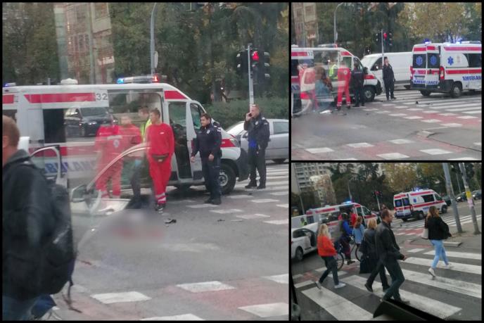 KURIR NA LICU MESTA, TEŠKA NESREĆA KOD YU BIZNIS CENTRA U NOVOM BEOGRADU: Sudar auta i kola Hitne pomoći, ima povređenih (FOTO)