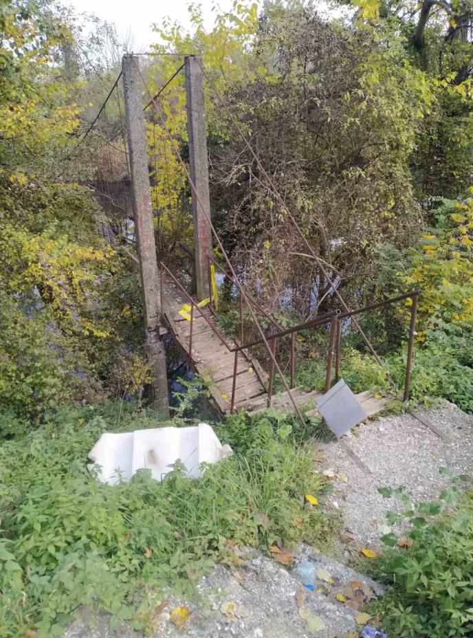 Žute table s upozorenjem o zabrani korišćenja postavljene su po dopunjenom rešenju građevinske inspekcije u Čačku. Pored njih, postojale su i trake s upozorenjem, kao i fizičke barijere, kako se ne bi moglo kročiti na most. Medutim, jutros smo zatekli razrušene prepreke koje su stajale u travi. Od tabli ni traga.