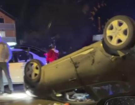 Sudarila su se dva automobila, od kojih se jedan isprevrtao i završio na krovu.