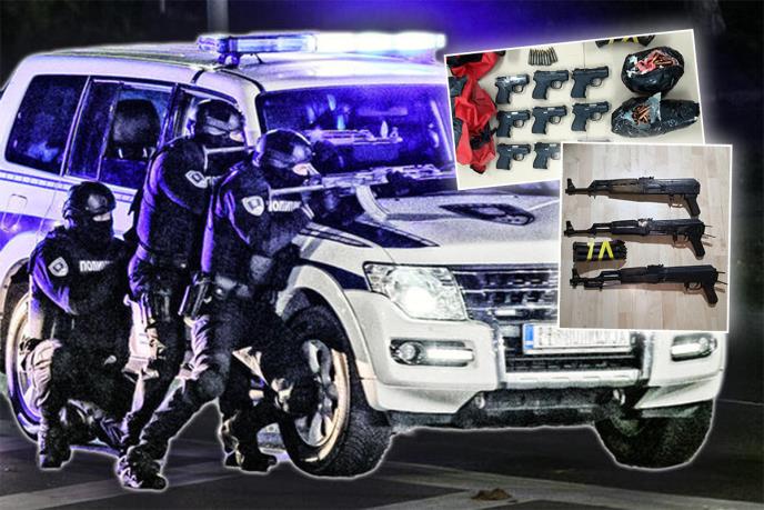 Policija je, prilikom pretresa kuće u kojoj živi osumnjičeni, pronašla tri putne torbe u kojima se nalazilo pet automatskih pušaka i više pištolja i preko 500 metaka.