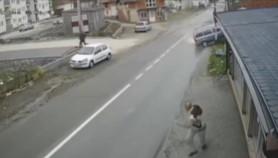 Oko 16 sati vozač "opel astre" izgubio je kontrolu nad vozilom zbog klizavog puta i velike brzine. Automobil se zakucao u banderu, od koje se potom odbio u kuću.
