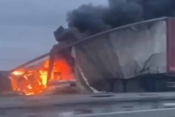 U udesu su učestvovala dva šlepera, a pri sudaru oba teretna vozila su se zapalila.