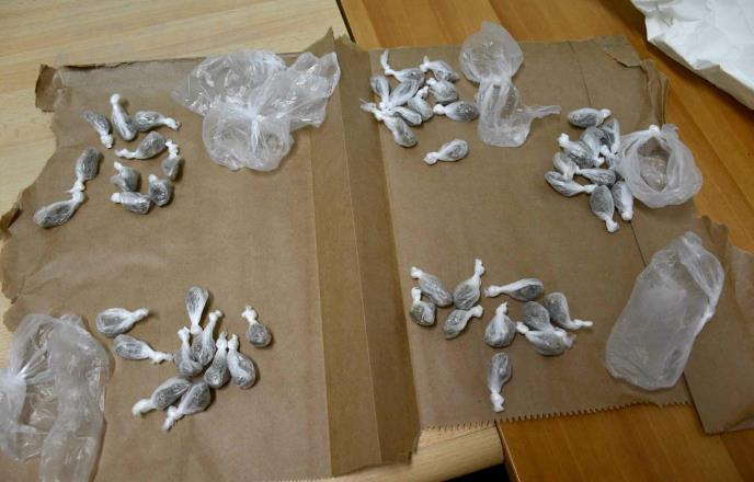 231 paketić sa biljnom materijom za koju se sumnja da je marihuana, 41 paketić s praškastom materijom nalik na kokain, kao i oko 300 grama smese za uvećanje mase narkotika.
