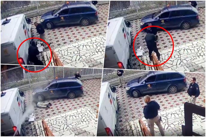Na snimku nadzorne kamere vidi se trenutak kad su pljačkaši pokušali da otmu novac. Jedan od njih je prišao vrećama, naterao radnika obezbeđenja da legne, ali usledila je pucnjava zbog čega je morao da pobegne.