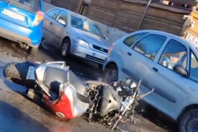 Na društvenim mrežama pojavio se snimak nastao malo posle saobraćajne nesreće koja se dogodila kad je na motociklistu ispred jednog restorana naleteo automobil.
