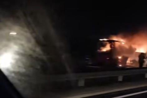 ZAPALIO SE AUTOBUS NA AUTOPUTU: Vozilo potpuno izgorelo, ne zna se da li ima povređenih! VIDEO
