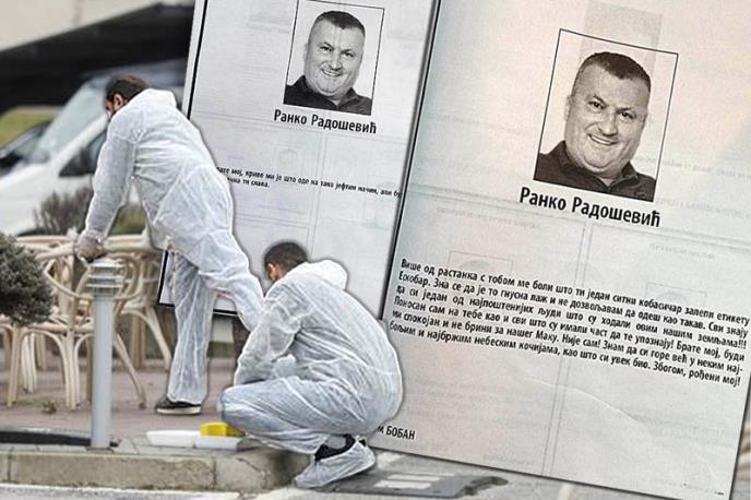 Brate moj, budi mi spokojan i ne brini za našeg Maku. Nije sam! Znam da si gore već u nekim najboljim i najbržim nebeskim kočijama kao što si uvek bio. Zbogom, rođeni moj!, reči su kojima se u čitulji od ubijenog Radoševića oprostila osoba koja se potpisala kao kum Boban.