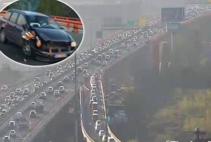 Da stvar bude još gora, u levoj traci se jedan auto i pokvario pa to dodatno otežava saobraćaj.
