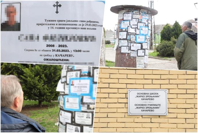 BEOGRAD/KAČAREVO - "Tužnim srcem javljamo svim rođacima, prijateljima i poznanicima da je 29. marta u 14. godini preminuo naš voljeni...", piše na umrlici dečaka koji je juče tragično nastradao posle pada s trećeg sprata kroz prozor osnovne škole u Kačarevu.