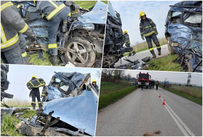 Na fotografijama s mesta teške nesreće vidi se da je prednji deo putničkog automobila potpuno smrskan kao i da je oštećen prednji deo kamiona na koji je auto naleteo.