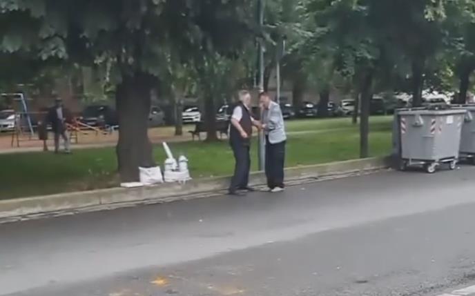 Naime, na snimku se vidi stariji muškarac koji drži nož u ruci, dok njegov prijatelj, kako se navodi u objavi, pokušava da mu otme nož i da ga smiri.