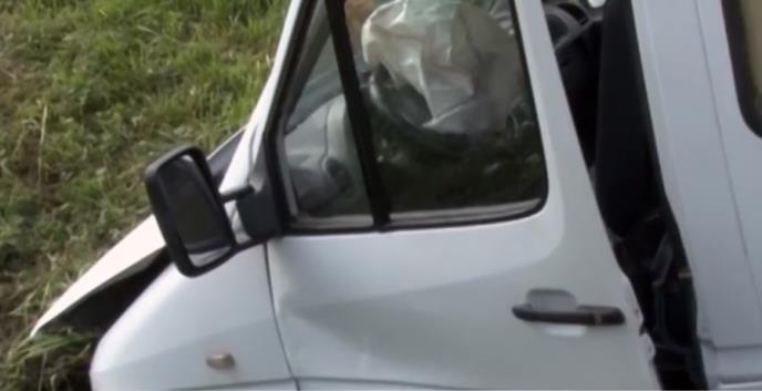 Od siline udarca kombi je sleteo sa puta i uleteo u kanal.