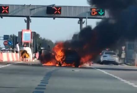 Na naplatnoj rampi Stara Pazova u smeru ka Beogradu, zapalio se automobil i potpuno izgoreo.