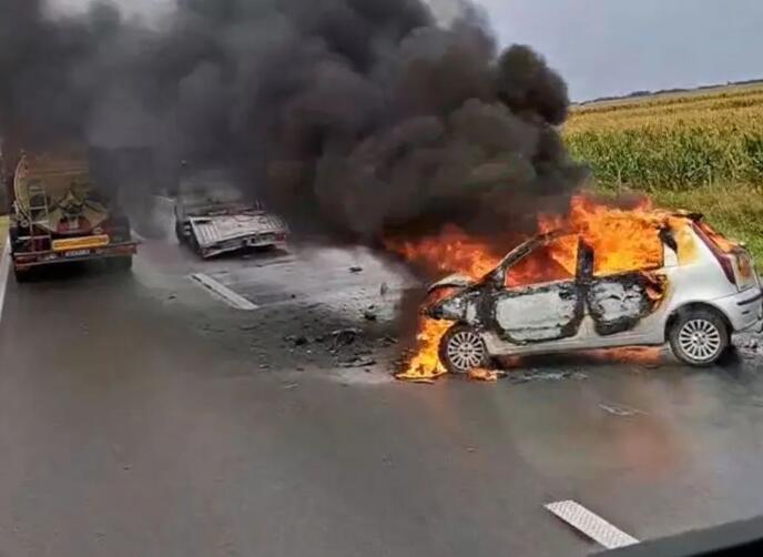Na putu za Novi Sad, posle isključenja za Zmajevo, dogodio se sudar posle kog se automobil zapalio.