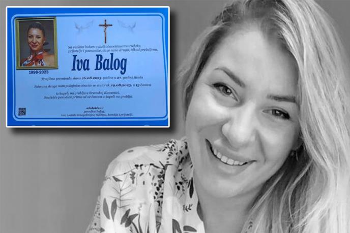 Iva Balog (27) iz Novog Sada, čije je beživotno telo pronađeno nakon gotovo dvodnevne potrage pored obale u Dunavu na području Starih Banovaca, biće sahranjena sutra na groblju u Sremskoj Kamenici.