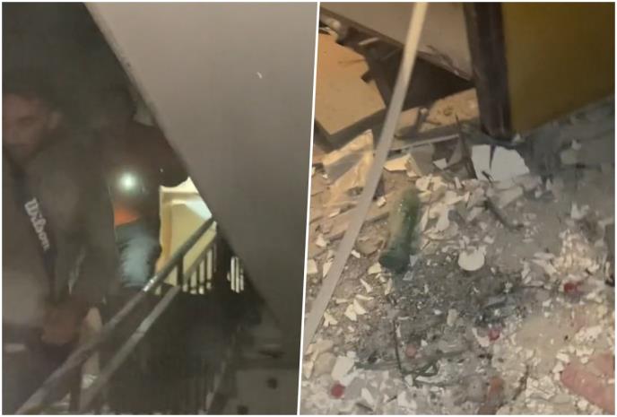 Na snimku se vidi ljudi koji trče niz stepenice u panici kroz šut i lom koji je izazvala detonacija, a u jednom trenutku se čuje i muški glas koji pita: "Ljudi, da li ima povređenih?"