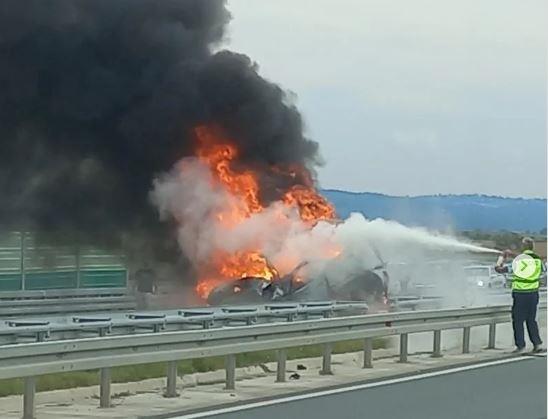 U pomoć su odmah pritekli drugi vozači koji su pokušali da ugase plamen protivpožarnim aparatima. Za sada se ne zna ima li nastradalih i povređenih.