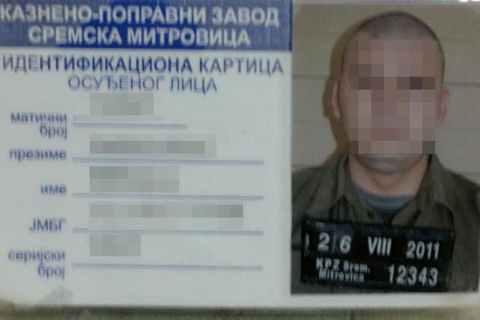 Na slici iz zatvora koju je objavio, on je u zelenom odelu, ošišan maltene do glave, a na identifikacionoj kartici piše KPZ Sremska Mitrovica, njegovo ime i prezime i lični podaci.