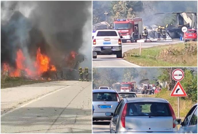Policija obezbeđuje mesto nesreće i radi se uviđaj. Saobraćaj na ovom delu puta je potpuno obustavljen.