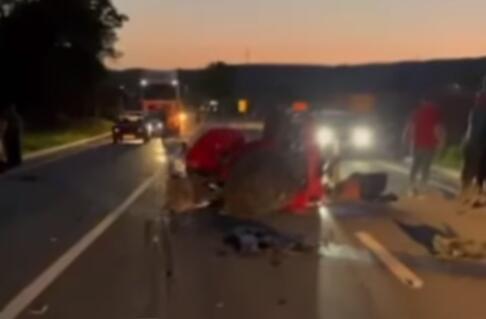 Kako se može videti na snimku objavljenom na instagram stranici 192_rs, delovi automobila rasuti su po putu i pričinjena je veća materijalna šteta.