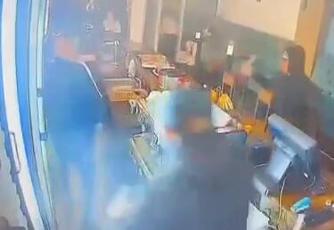 Kako se vidi na snimku na "Telegram" kanalu "192_rs", dvojica maskiranih muškaraca su upala naoružana i napala su konobara.