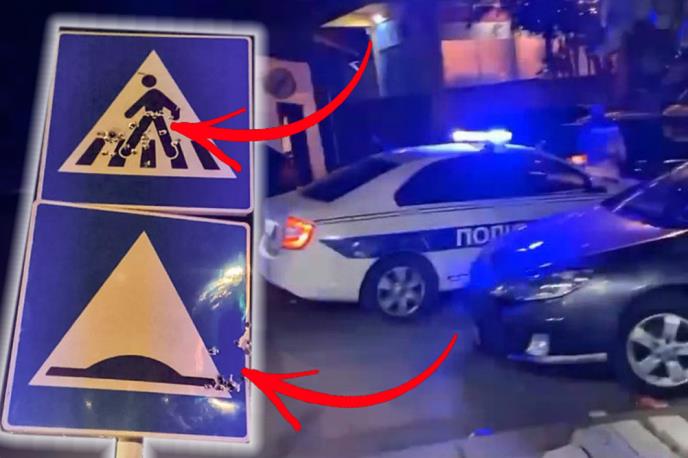 Tom prilikom oštećen je saobraćajni znak postavljen ispred pešačkog prelaza, kao i fasada na ugostiteljskom objektu.