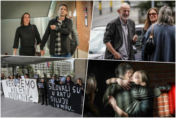 Ispred ulaza u sud dočekali su je transparenti "Verujemo Mileni Radulović", "Siluju u ratu, siluju i u miru", "Silovanje je zločin".