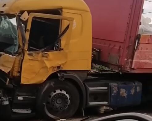 Konstrukcija je ostala nakrivljena, a deo metala je završio u šoferšajbni kamiona, čiji je levi deo oštećen.