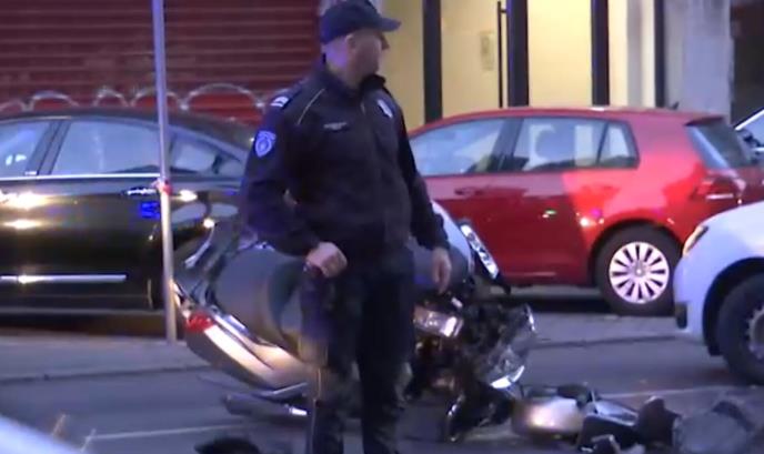 U nesreći je uništen skuter, dok vozač nepomično leži na ulici.
