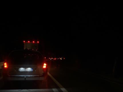 Saobraćaj na ovoj deonici je u prekidu, a dugačke kolone vozila formirane su u oba smera.