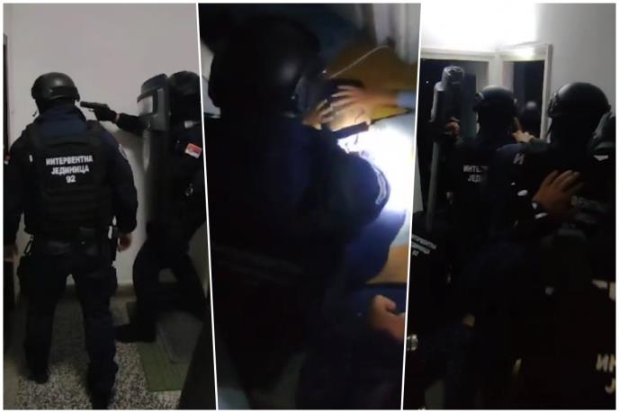 Njemu je na vrata zakucala Interventna jedinica 92, a čim je otvorio vrata uleteli su naoružani i sa štitovima.