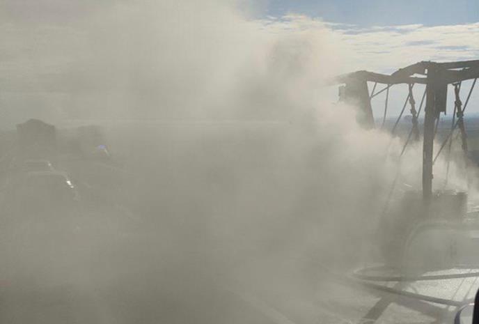 Kako su naveli, saobraćaj je obustavljen u oba smera zbog dima, zbog čega se stvaraju velike kolone vozila.