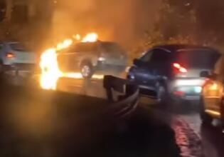 Kako se može videti na snimcima, prednji deo automobila je planuo, a vatra se potom proširila na ostatak vozila.