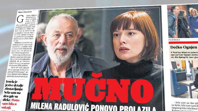 - M islim da je ovo ključni trenutak suđenja Miroslavu Miki Aleksiću, pre svega jer je i od Milene Radulovića potekla ta lavinA koja se na kraju pretvorila u krivične prijave brojnih učenica Mikine škole i došli smo do tog dela gde je ona imala završni deo svedočenja. Kao što se očekivalo i sam naslov koji je današnjem Kuriru sve govori, to je mučno, znači da je Mika Aleksić i uopšte njegov advokatski tim i odbrana su nastavili tu taktiku pre svega provokativnih pitanja, pokušali su da je diskredituju potpuno i da jednostavno dođe do takve situacije da je ona sama u nekoliko momenata zaplakala, ali i smogla snage da se suoči s njim - istakao je Nedić.