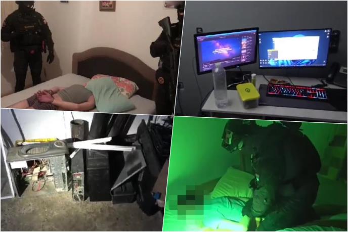 Kako se može videti na snimku hapšenja, koji je objavio MUP, specijalci su upali u kuću gde se nalaze osumnjičeni za lažne dojave, a uhapsili su ih dok su spavali.