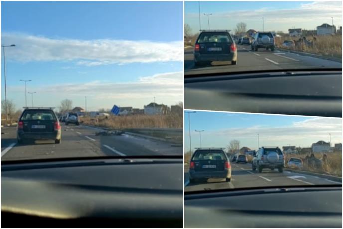 TEŠKA SAOBRAĆAJKA NA ZRENJANINSKOM PUTU: Dva automobila sletela s kolovoza, jedan završio NA KROVU (VIDEO)