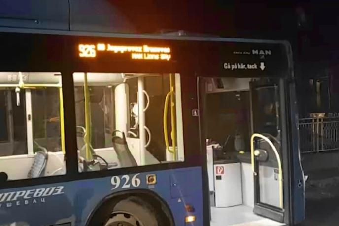 U ulici Antuna Pordušića u Kruševcu večeras se dogodila saobraćajna nezgoda u kojoj je autobus kruševačkog "Jugoprevoza", koji je saobraćao iz Cerove ka centru grada, prešao na suprotnu stranu ulice, udario u ogradu i prodavnicu. Nema povređenih.