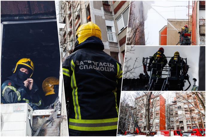 PRVI ZASTRAŠUJUĆI SNIMCI VELIKOG POŽARA NA BANJICI: Poslednji sprat zgrade u plamenu, EVAKUIŠU se svi stanari, saobraćaj OTEŽAN