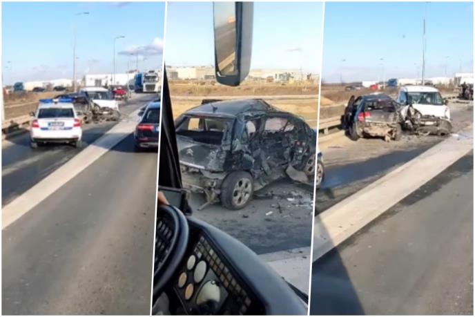 Kako se vidi na snimku, neki od automobila su bukvalno spljeskani od siline udesa. Dva vozila su se sudarila, a nekoliko metara dalje još dva, dok je kombi završio u desnoj traci.