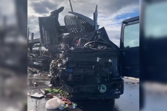 Na fotografijama sa lica mesta koje objavljuje "192", koje su večeras objavljene, vide se razmere uništenja. Kabine kamiona su potpuni uništene, a jedan od vozača je nastradao.