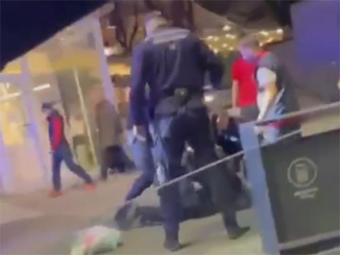 Policajci su, uz povike "lezi dole" prvo oborili na trotoar, a potom i uhapsili muškarca, naočigled građana koji su u čudu posmatrali šta se događa.