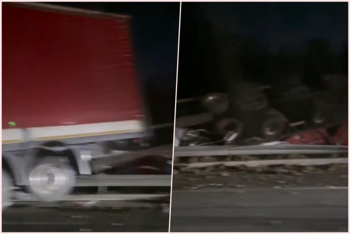 JEZIVA NESREĆA NA AUTOPUTU MILOŠ VELIKI! Objavljen snimak sa lica mesta: Smrskano vozilo završilo pored puta (VIDEO)