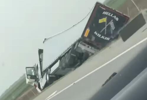 Kako se može videti na snimku, kamion je sleteo sa puta i prevrnuo se.