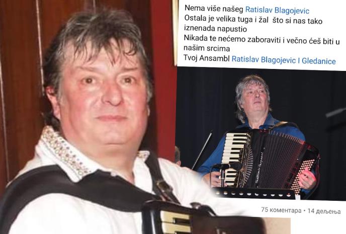 - Nema više našeg Ratislava Blagojevića. Ostala je velika tuga i žal što si nas tako iznenada napustio. Nikada te nećemo zaboraviti i večno ćeš biti u našim srcima. Tvoj Ansambl Ratislav Blagojević i Gledanice - oprostio je njegovom fotografijom Ansambl. Ispod ove objave koje su se samo nizali tužni komentari.