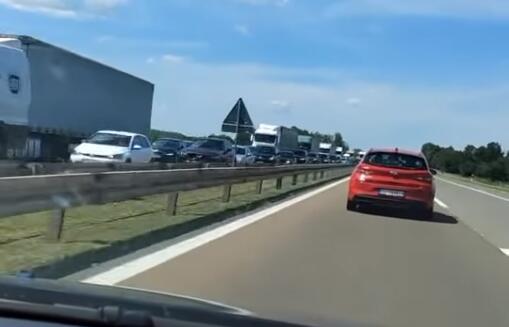 Saobraćaj se odvija samo u jednoj traci, a na putu su već formirane kilometarske kolone.