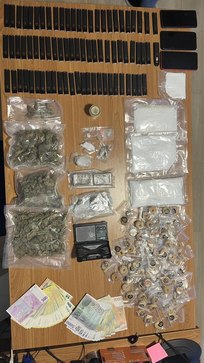Takođe, pronađeno je i 76 vajp uređaja sa kanabisovim uljem, kesica sa halucinogenim pečurkama, kesica sa sličicama lsd, četiri tablete ekstazija, 100 kesica sa hranom koja sadrži kanabis, digitalna vagica za precizno merenje i novac u iznosu od 8.050 evra i 109.000 dinara koji su, kako se sumnja, stečeni prodajom narkotika.