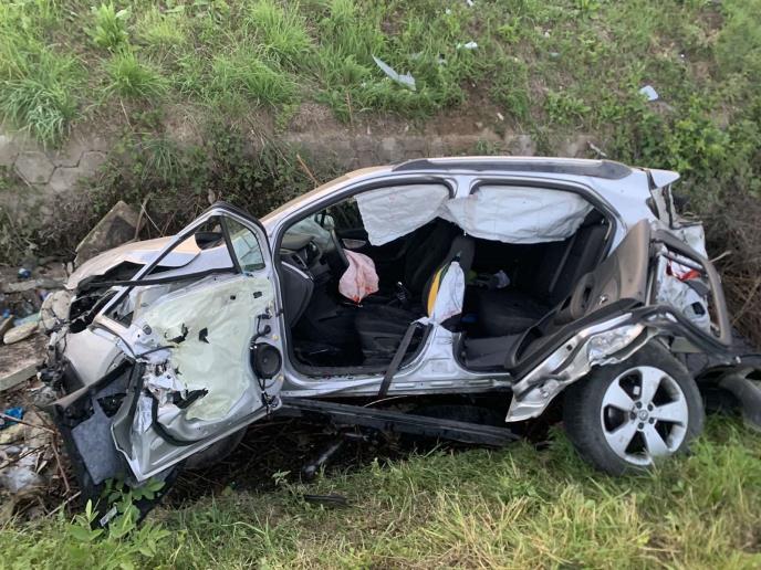 Automobil je potpuno uništen, a od siline udarca završio je u kanalu pored pruge.