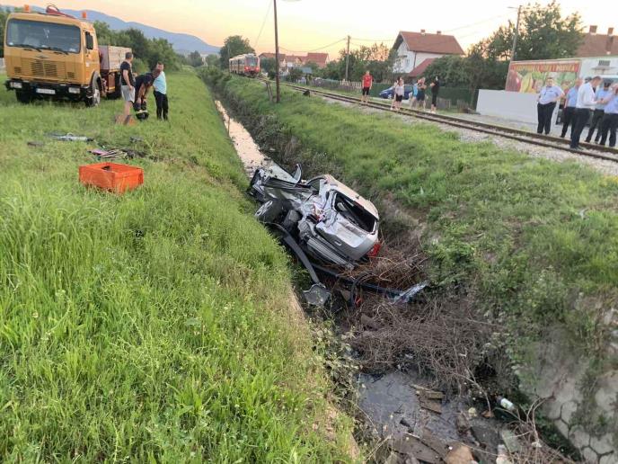 Od siline udarca automobil je završio u kanalu, a meštani iz okolnih kuća kažu da se čuo strahovit prasak. Inače, pružni prelaz na ovom mestu nema rampu, ali je propisno obeležen.
