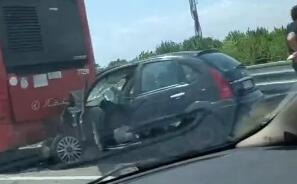 Kako se vidi na snimku koji je objavila stranica 192_rs, automobil je "zgužvan", a vozila koja su učestvovala u udesu nalaze se u zaustavnoj traci.